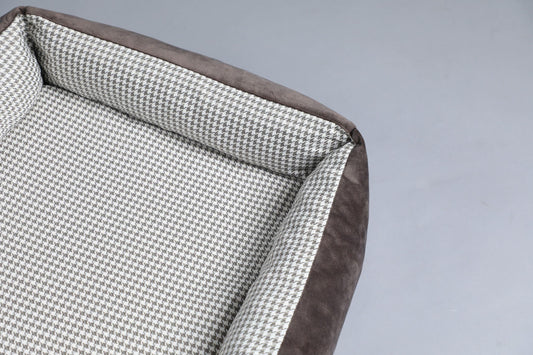 Modern dog bed with sides | 2-sided | HOUNDSTOOTH+TAUPE