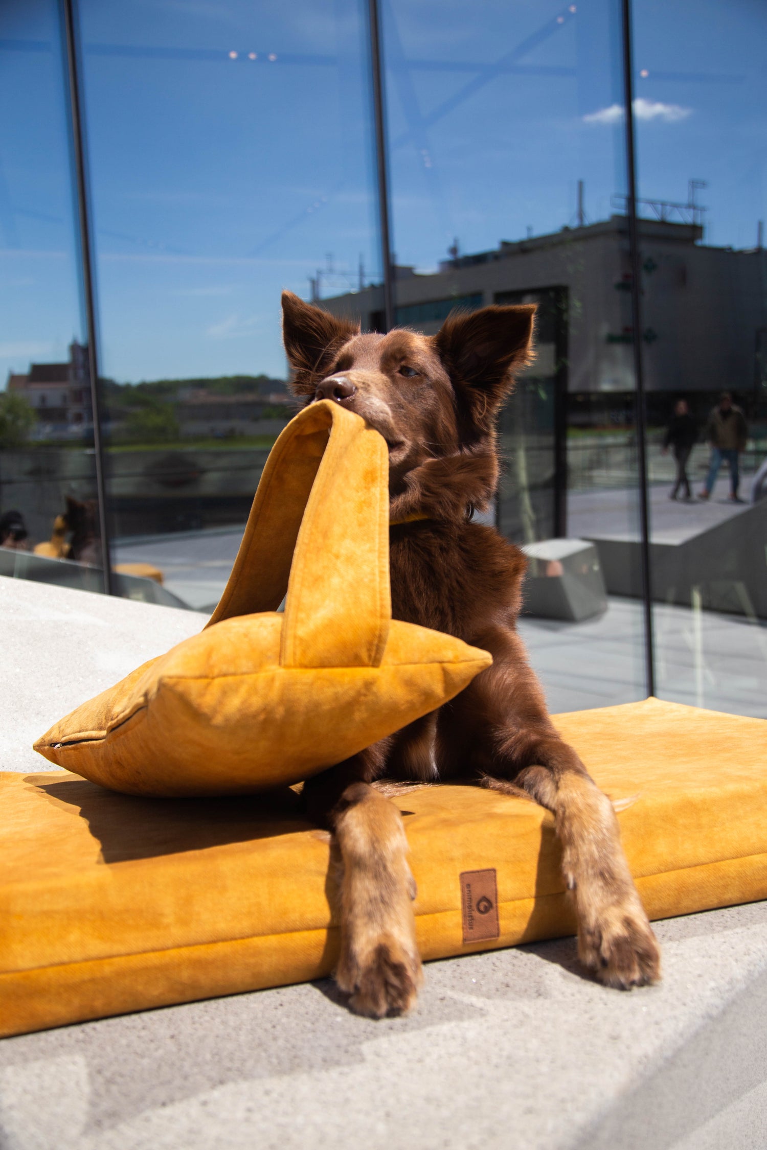 Treat your dog (and your home) to a luxurious, handcrafted dog bed which is both exceptionally comfortable and supportive. Made with velvet-look and nano-protected furniture-grade upholstery, the bed is easy to clean, machine-washable, and ads a stylish touch to any interior. The bed also includes waterproof liner to protect the inner mattress.